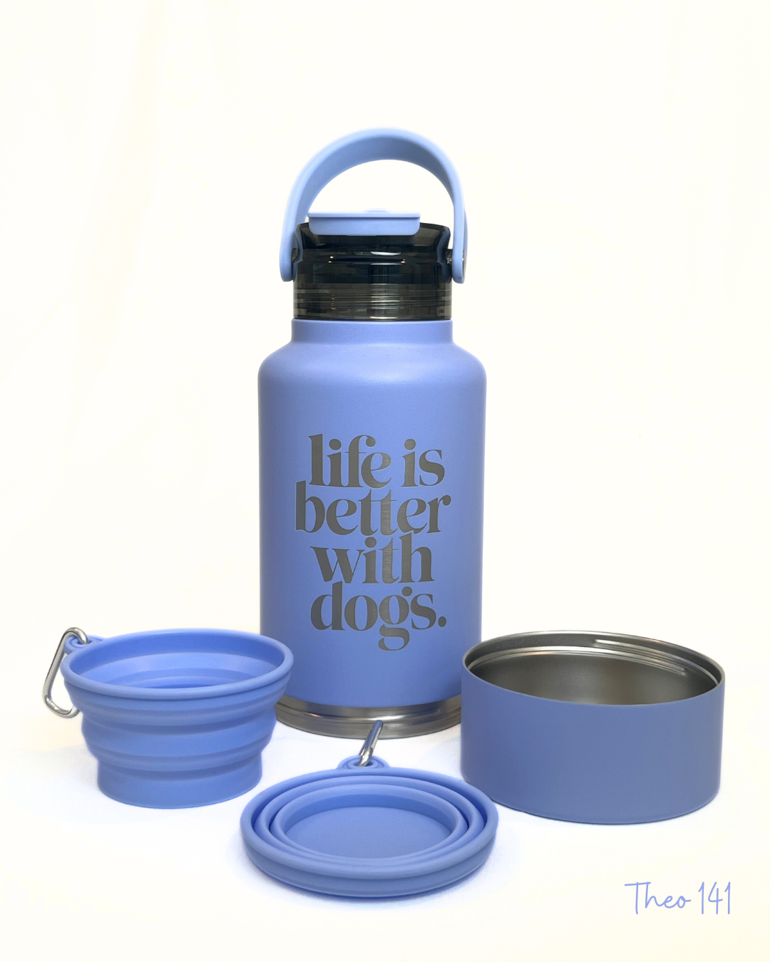 This reusable stainless steel hydration jug is designed for life on the go with your dog. Made from durable stainless steel, it keeps water secure and easy to carry while offering a smart, all-in-one solution for pet hydration, pet food, or both.