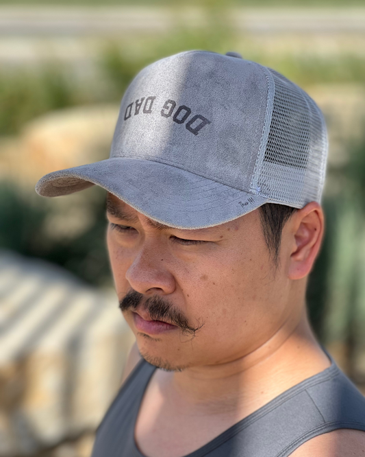 'Dog Dad' Upside Down Text Suede Cap - Army Green